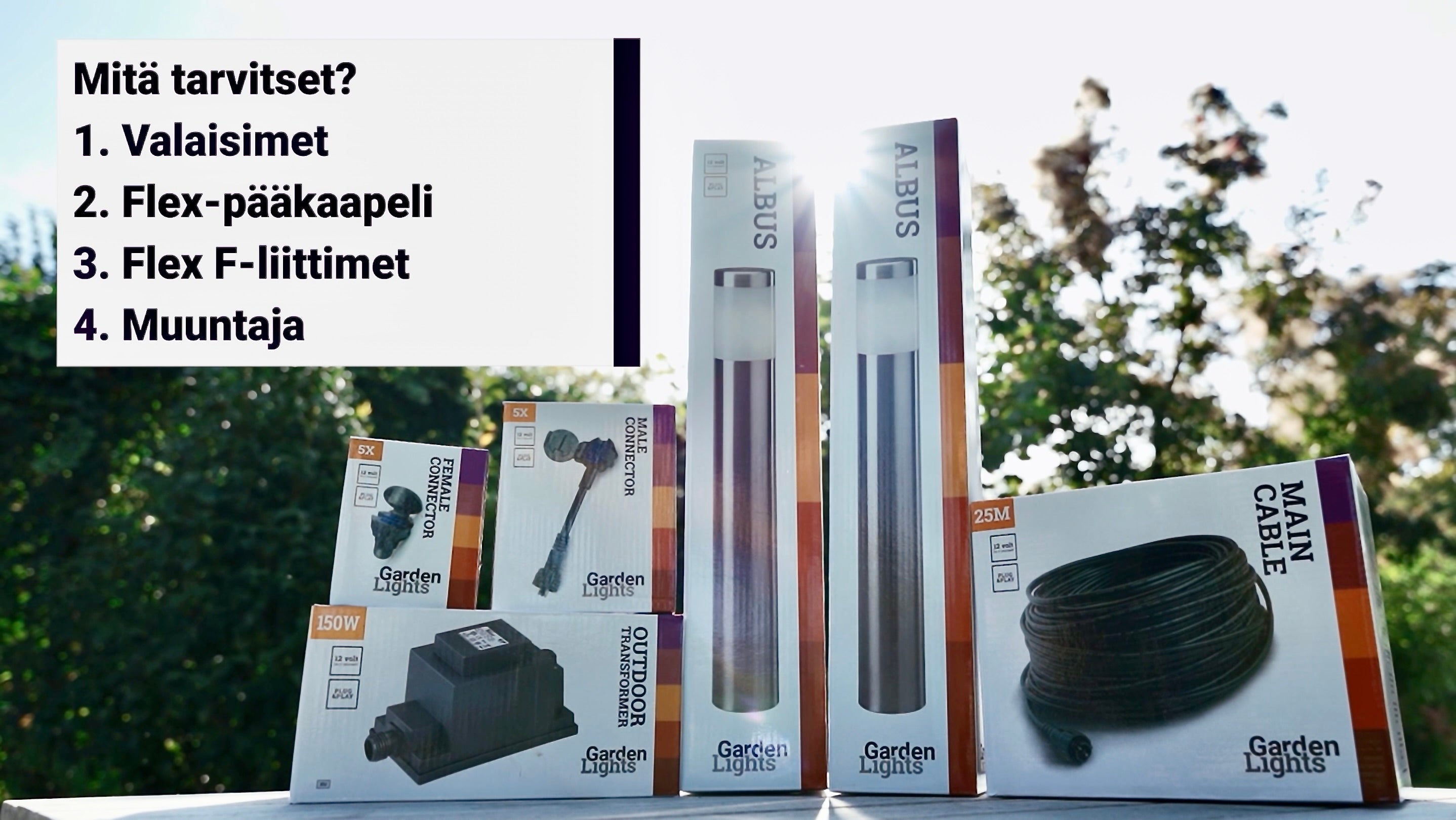 Suomessa illat ovat usein pimeitä, joten valaistus on tärkeä tekijä pihan viihtyvyyden kannalta. Hyvin suunnitellulla pihavalaistuksella turvaat liikkumisen ja lasten leikit sekä luot pihalle viihtyisän tunnelman ja korostat pihan yksityiskohtia. Katso miten helppoa Garden Lights valaisimien asentaminen Flex-pääkaapelilla on.